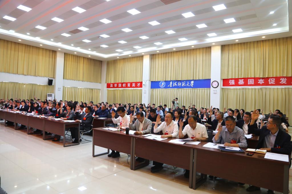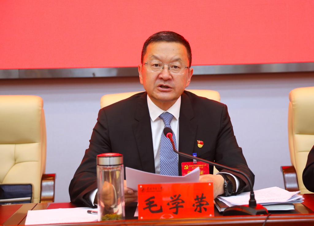 校党委书记毛学荣,校党委副书记、校长涂清云以及许存宁、张海军、董占明、陈雪梅、牟昱苍等校领导班子成员出席会议,第八次代表大会代表参加会议。会议由毛学荣主持。