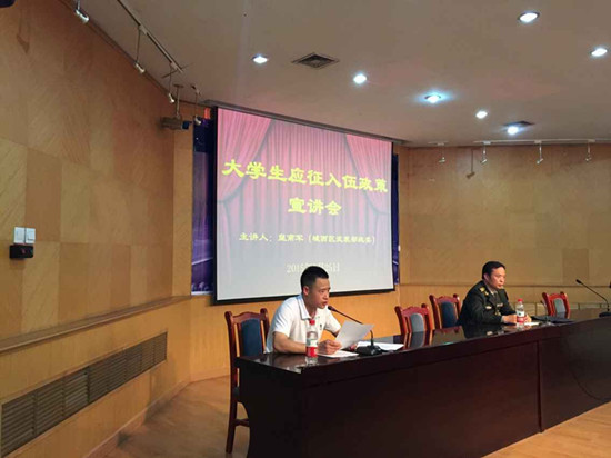 6月25日下午,365官网在田家炳学术报告厅召开大学生应征入伍政策宣讲会,西宁市城西区人民武装部政委皇甫军作征兵政策宣讲。365官网各院系师生代表200余人参加了宣讲会。宣讲会由学工处副处长王彦芳主持。 会上,皇...26 2015-06 -
