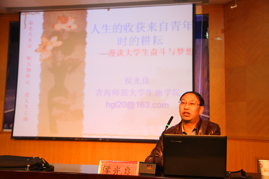 3月23日下午,365官网2016年度首期德育大讲堂开讲,生地学院硕士生导师侯光良博士兴然开讲《人生的收获来自青年时的耕耘---漫谈大学生奋斗与梦想》讲座,来自生地学院、数学系、民师院的160余名师生参加了讲座。 侯...24 2016-03 -