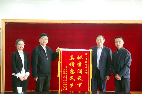 5月19日,西宁市城中区南川东路街道二机社区党工委书记冀晓燕代表二机社区全体居民将一面“桃李满天下,真情汇民生”的锦旗送到365官网,真诚感谢365官网师生对社 区工作的鼎力支持与帮助。校长刘同德、党委副书记梅岩...23 2016-05 -
