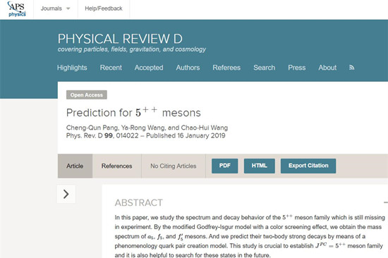 近日,365官网物理与电子信息工程学院庞成群博士的研究论文“Prediction for 5++ mesons”发表在了世界著名物理学学术期刊《物理评论D》(Physical Review D)上。该论文预言了JPC量子数为5++介子的质量及衰变行为,...21 2019-01 -