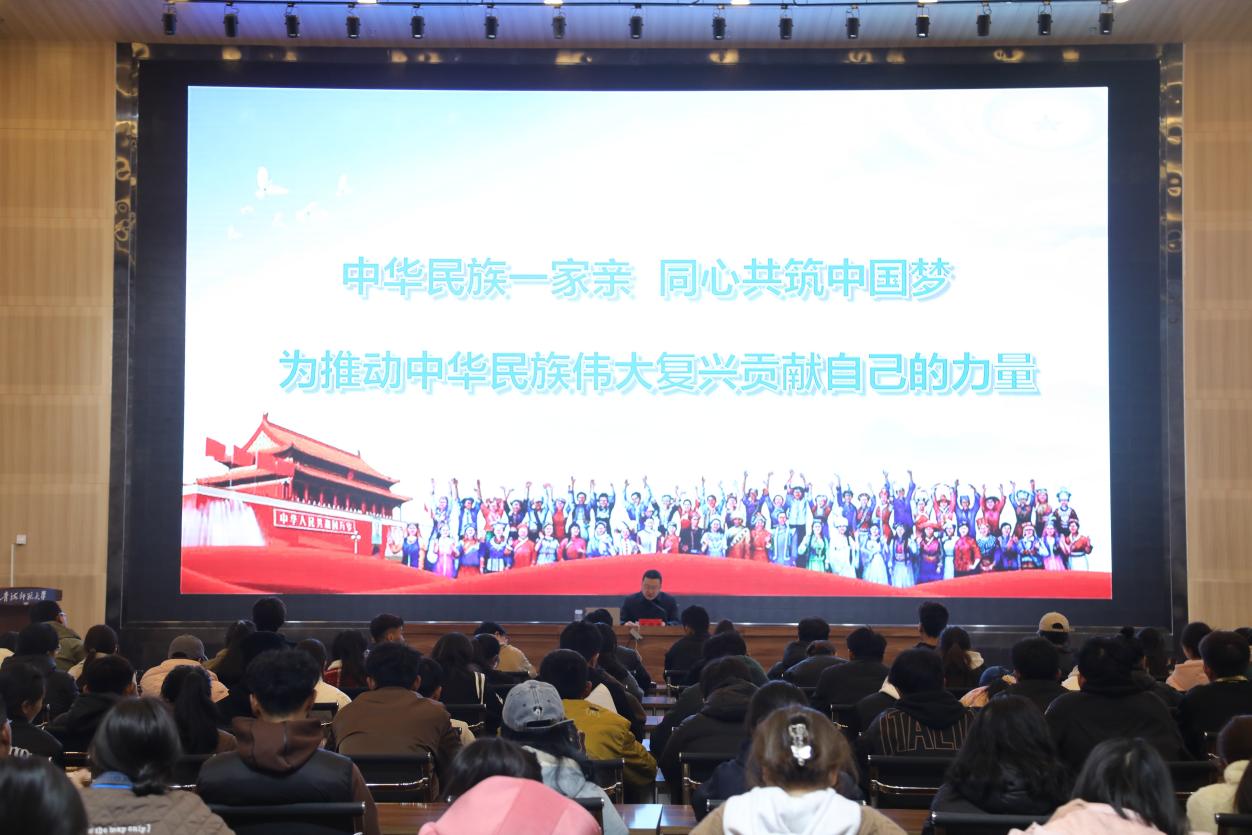 3月8日上午,校党委书记毛学荣在图书馆报告厅以“铸牢中华民族共同体意识构筑共有精神家园”为主题,为师生讲授2024年春季学期“开学第一课”。党委宣传部、民族师范学院、马克思主义学院、计算机学院主要负责人...08 2024-03 -