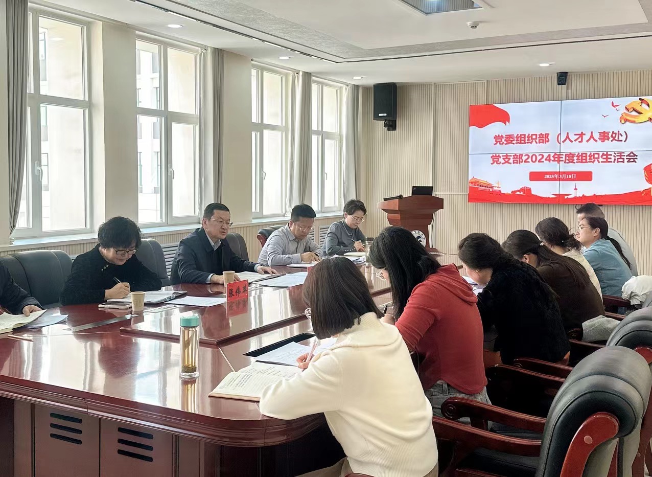 3月18日,党委组织部(人才人事处)党支部召开2024年度组织生活会,校党委书记毛学荣同志以普通党员身份参加组织生活会,与支部党员一起交流思想体会,开展批评与自我批评。机关党委组织委员张伟萍同志列席会议。...19 2025-03 -