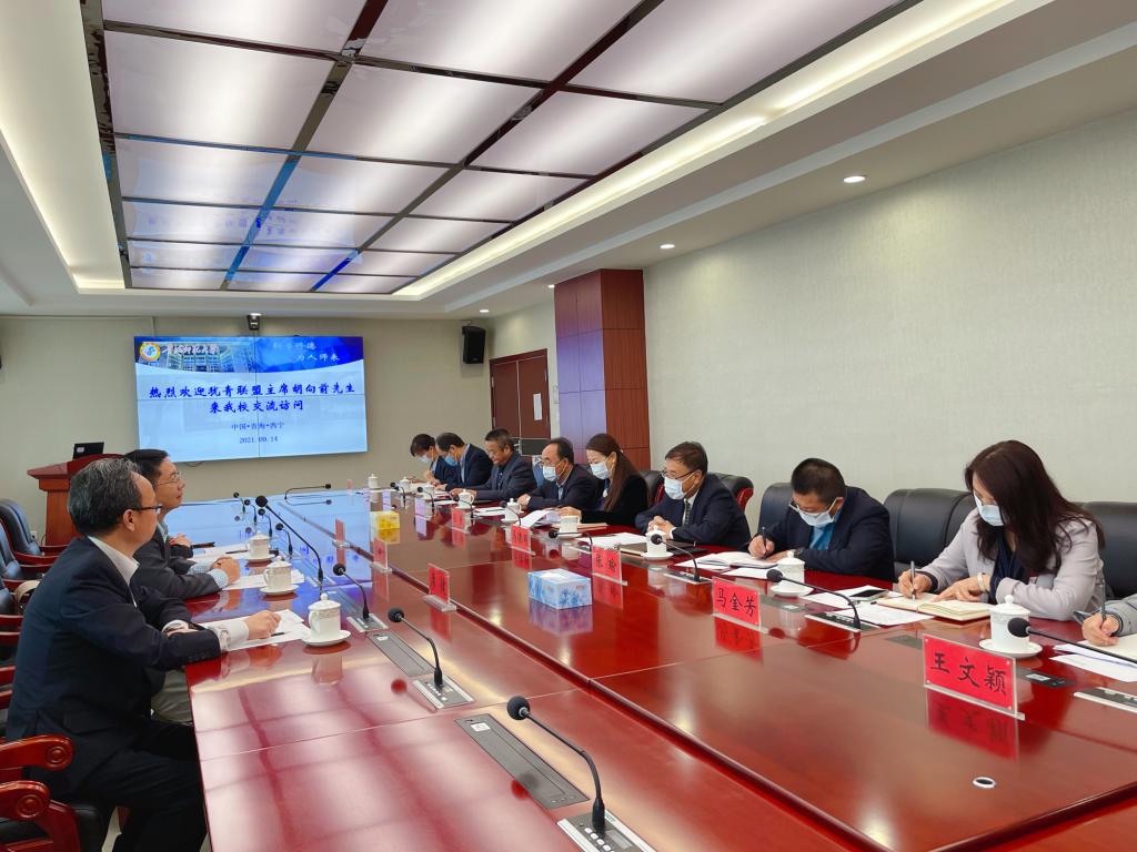 9月14日,犹他-青海联盟主席胡向前在省外事办国际交流处二级巡视员席健的陪同下访问365官网,校党委副书记、常务副校长马德明会见了胡向前博士并举行座谈会,相关职能部门及学院负责人参加了座谈。