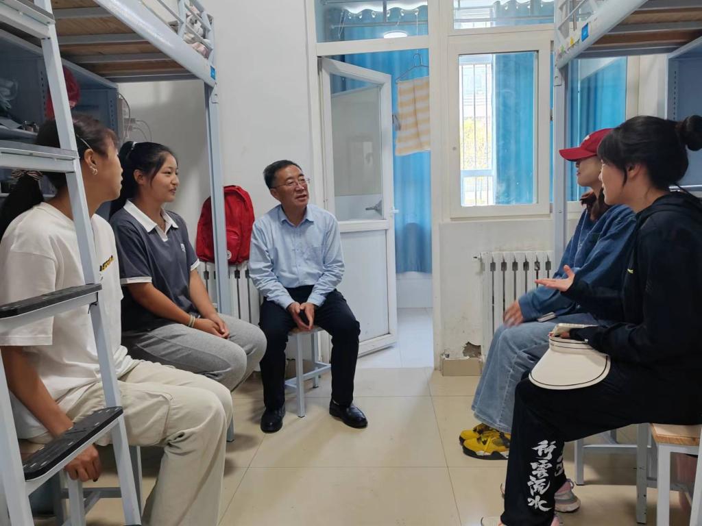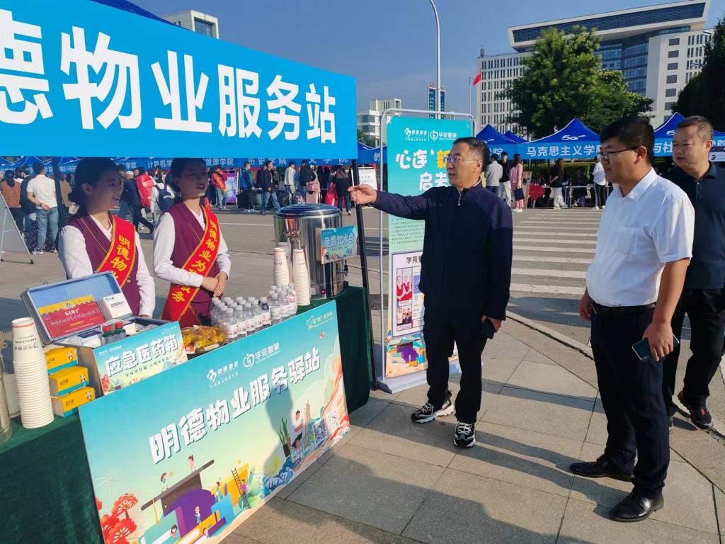 党委副书记许存宁等校领导亲临迎新现场检查指导迎新工作,看望远道而来的新生及家长,并慰问现场工作人员,他对迎新工作人员认真负责的工作态度表示肯定和赞扬,同时强调迎新过程中要注意师生的人身安全和财产安全问题,确保迎新工作顺利进行。许书记在相关部门负责人陪同下深入学生社区看望慰问新生并与学生亲切交谈。