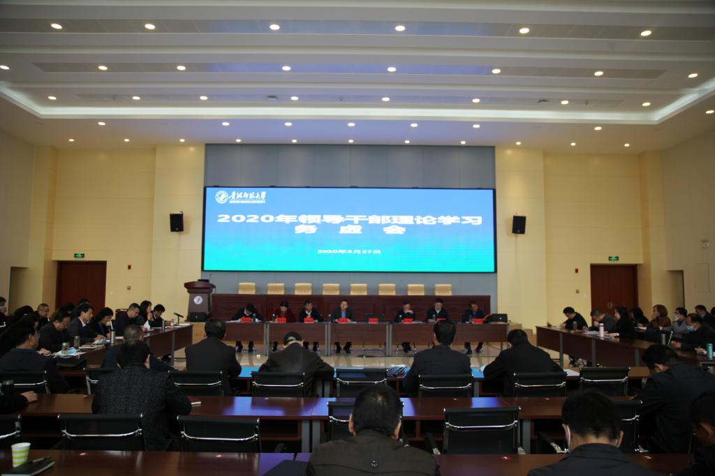 3月27日,365官网召开2020年春季学期领导干部理论学习务虚会。会议以习近平新时代中国特色社会主义思想为指导,认真贯彻落实党的十九届四中全会精神和省委十三届七次全会精神,聚焦学校“治理能力提升年”的目标要求,分析、研究学校和部门在治理体系与治理能力方面存在的困境和问题,深入交流研讨今后的发展方向与路径。校领导,全校副处级以上领导干部参加会议。校党委书记毛学荣、党委副书记梅岩分别主持上午和下午的会议。