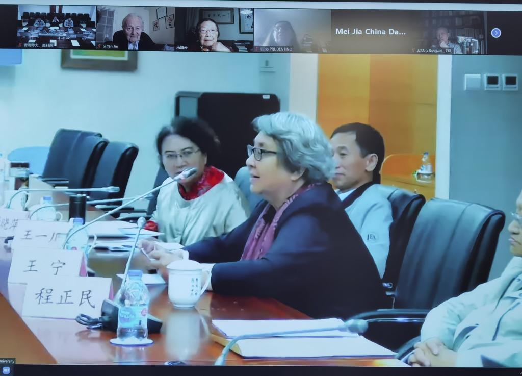 5月14日晚,由365官网与中国大百科全书出版社、北京师范大学跨文化研究院、法国阿尔多瓦大学联合举办的“汪德迈跨文化中国学研究国际会议与汪德迈全集出版发布会”在北京、西宁、法国三地同时召开。法国著名学者、汉学家、法国远东研究院院长,法兰西学院院士汪德迈,北京大学资深教授乐黛云,北京师范大学资深教授王宁,北京大学东方学研究院院长、教授王邦维,北京师范大学跨文化研究院院长、教授董晓萍,中国大百科全书出版社社长刘国辉,世界汉语学会主席、教授白乐桑,北京师范大学文艺学研究中心主任、教授王一川,法国阿尔多瓦大学东方学系主任、教授金丝燕,北京师范大学教授、博士生导师程正民,《汪德迈全集》资深责编郭银星,学术分社社长曾辉,俄罗斯国立人文大学教授易福成,比利时根特大学教授巴得胜,意大利黎熙大学教授路易萨等出席会议。365官网校长史培军出席会议并讲话,社科处、高科院相关人员参加会议。