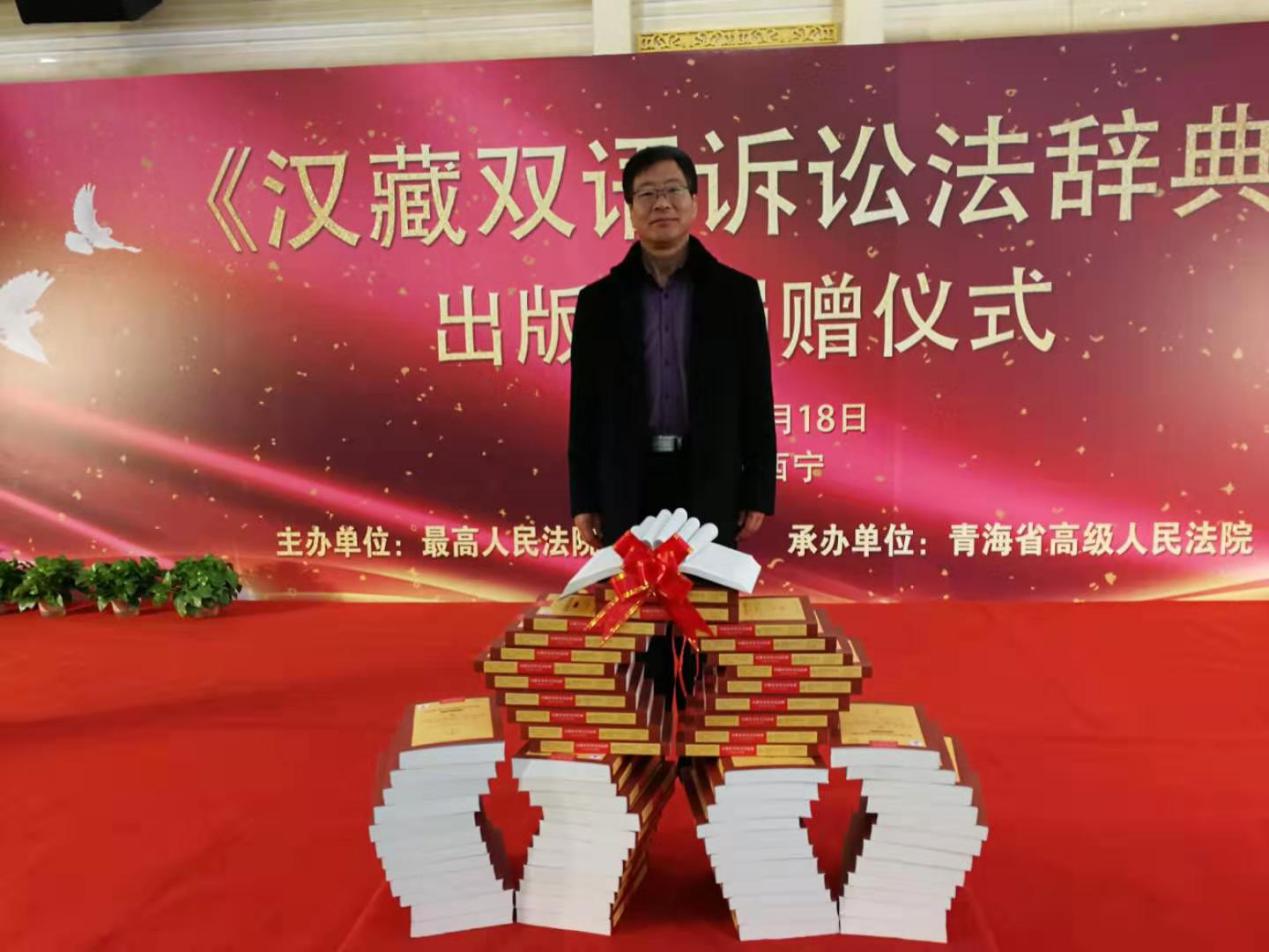 12月18日,《汉藏双语诉讼法辞典》出版暨捐赠仪式在西宁举行。青海省高级人民法院党组书记、院长陈明国出席并讲话,人民法院出版社党委委员、副总编辑林志农、国家民委政策法规司二级巡视员沈林、青海省委政法委副书记何占录分别致辞。365官网副校长扎布、法学与社会学学院娘吾加教授参加此次出版暨捐赠仪式。