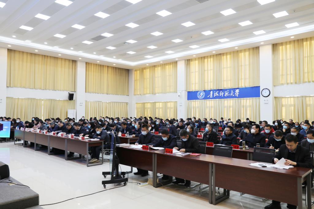 毛学荣代表领导班子作了2022年度目标责任完成情况和党风廉政建设责任制落实情况的汇报。2022年,在省委省政府的坚强领导和大力支持下,学校以深入学习贯彻落实党的二十大精神为主线,紧紧围绕立德树人根本任务,认真履行管党治党、办学治校主体责任,统筹抓好发展与安全,党的领导更加坚强有力,党建引领保障效能更加显著,师范教育主责主业更加突出,全面从严管党治党取得新成效,学校事业发展激活新动能,在高质量人才培养、高素质师资水平、高层次学科建设、高精尖科学研究、高水平社会服务、高品质对口支援和合作交流、高效能治理能力等七个方面取得了突破性成绩。学校将坚持以习近平新时代中国特色社会主义思想为指导,认真贯彻落实党的二十大和全国、全省教育工作会议精神,强化一个引领、抓实三项整改、推进四项改革、建强六大平台、实现五个突破、完成七项重点任务,奋力谱写各项事业高质量发展的新篇章。