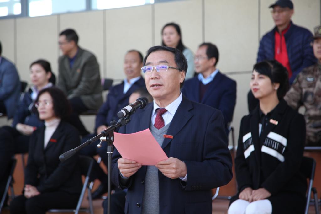 表演结束后,副校长冶成福对军训进行了全面总结。他代表学校对教育厅、省人防办、承训部队表达了诚挚的谢意,向精神饱满、认真投入、顽强拼搏的参训同学表示赞扬;向作风优良、素质过硬、可亲可敬的承训教官深表敬意。他指出,军事训练是大学生成长的重要一课,对锻炼强健体魄、树立严明纪律观念、培养坚韧意志品质有着重要的意义,并向同学们提了守纪律、能吃苦、爱集体的三点要求,勉励学生培养正确的世界观、人生观和价值观,要树立远大理想,不负青春、不负韶华、不负时代。