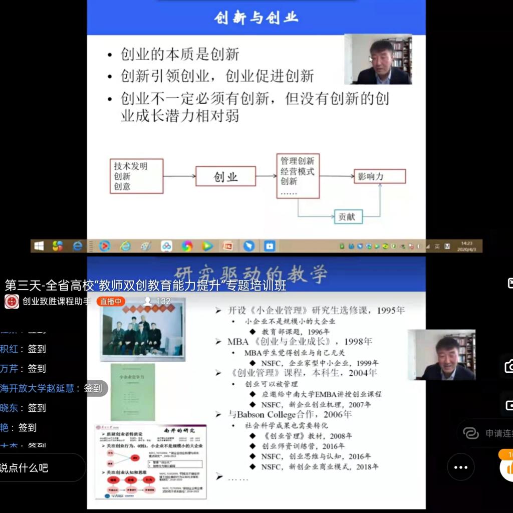 在为期5天的线上培训中,浙江大学、南开大学、天津大学等高校的4名创新创业专家围绕“精益创业、设计思维与第一性原理、如何学习创新创业、双创教育与大赛的融合、卓越创业与学习转型”5个内容进行专题讲解。通过对创新创业教育新理念、新技术与方法的培训,指导参训教师开阔创新创业教育视野与思维,提升教师创新创业教育水平和指导学生创新创业实践的能力。参训教师表示,此次培训让自己获益良多,对创新创业教育、专创融合、自身成长与发展等方面有了更清晰的认知,并积极思考如何在高等教育新形势下更好为学校教育事业作贡献。