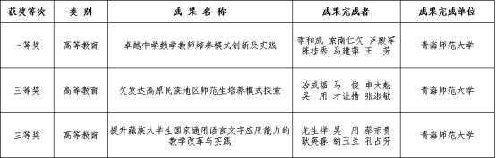 青海省教学成果奖由青海省人民政府设立,分为基础教育、职业教育和高等教育三大类,每四年组织评选一次。此次获奖充分体现了学校近年来注重教育教学改革创新、努力推动人才培养质量提升所取得的成果,学校将积极发挥上述获奖教学成果的示范引领作用,进一步深化教育教学改革,推动教育教学研究和实践,不断创新人才培养模式,全面提升教育教学水平和人才培养质量。