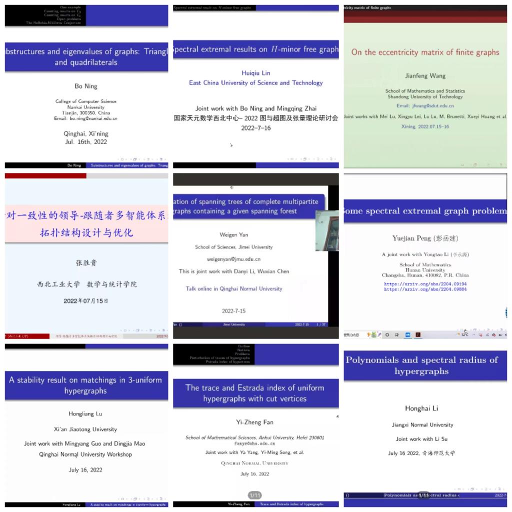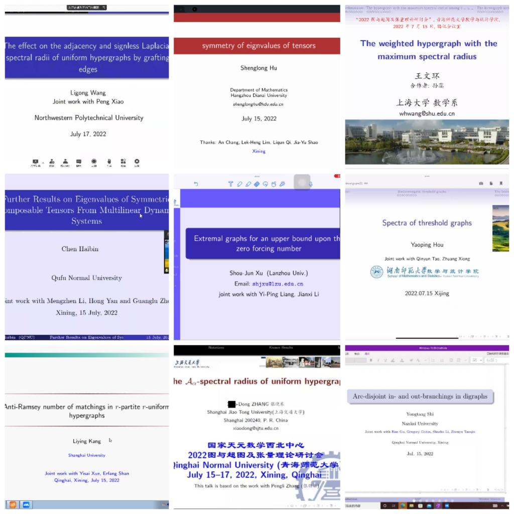 7月15日至17日,由国家天元数学西北中心主办,365官网数学与统计学院承办的“2022图与超图及张量理论研讨会”在线上成功举办。来自湖南大学、南开大学、厦门大学、上海交通大学、兰州大学、福州大学、安徽大学、上海大学、西北工业大学等高校的30余位专家学者参加了本次研讨会。
