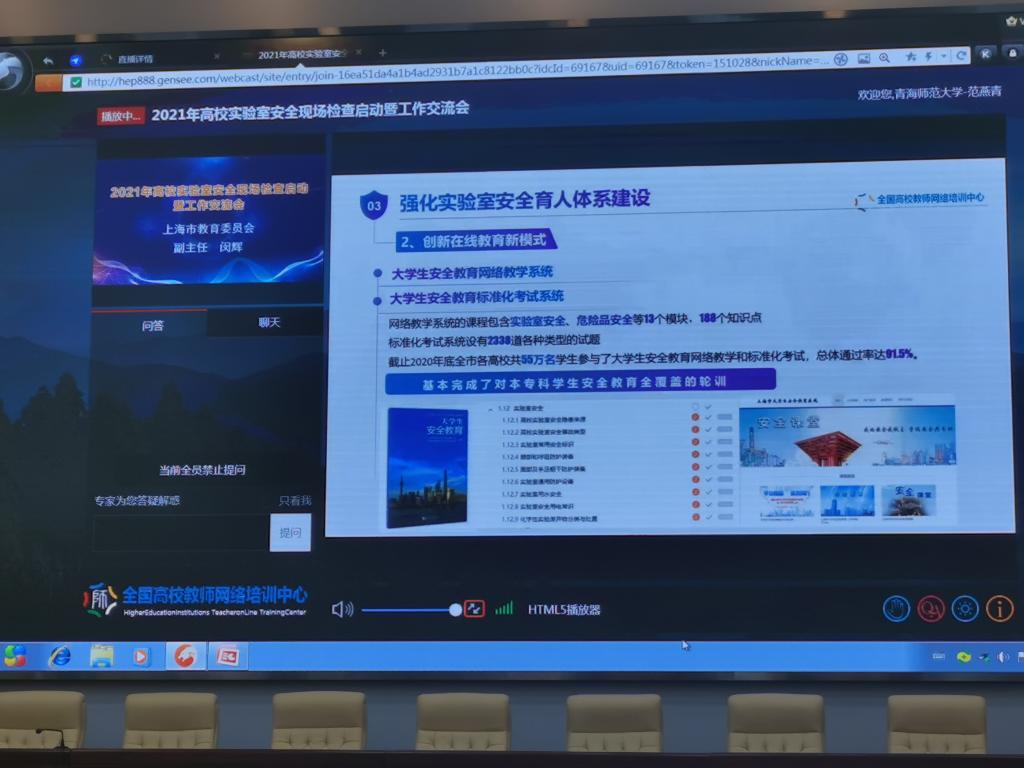 5月17日上午,公共资源管理中心组织学校生命科学学院、地理科学学院、物理与电子信息工程学院、化学化工学院、计算机学院主要负责人,实验室负责人及相关实验技术人员,城西校区综合办公室、保卫处及本部门相关人员,参加了由教育部科学技术与信息化司、高等教育司举办的“2021年高校实验室安全检查启动暨工作交流会”(线上)会议。