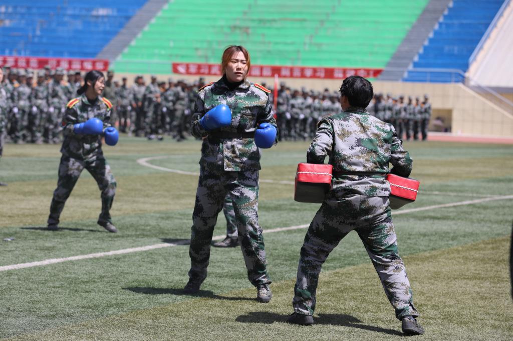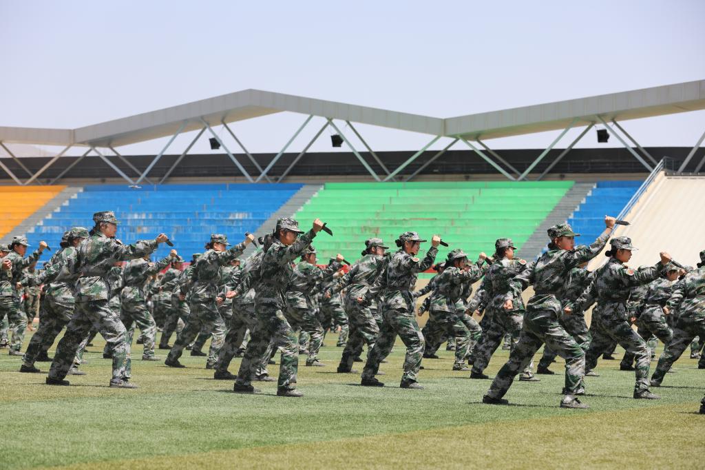 大会在庄严的国歌声中拉开帷幕。18个学院的方队在教官的带领下迈着矫健有力的步伐、喊着“请党放心,强国有我”的口号和“勤学修德,为人师表”的校训,英姿飒爽、意气风发的依次走过主席台,展现了师大学子的蓬勃朝气和昂扬锐气。在汇报表演环节,各方阵依次进行军训队列、战术表演等军训成果展示,精神振奋、特色突出、队形整齐、气势雄壮,赢得了现场领导和老师们的阵阵掌声。