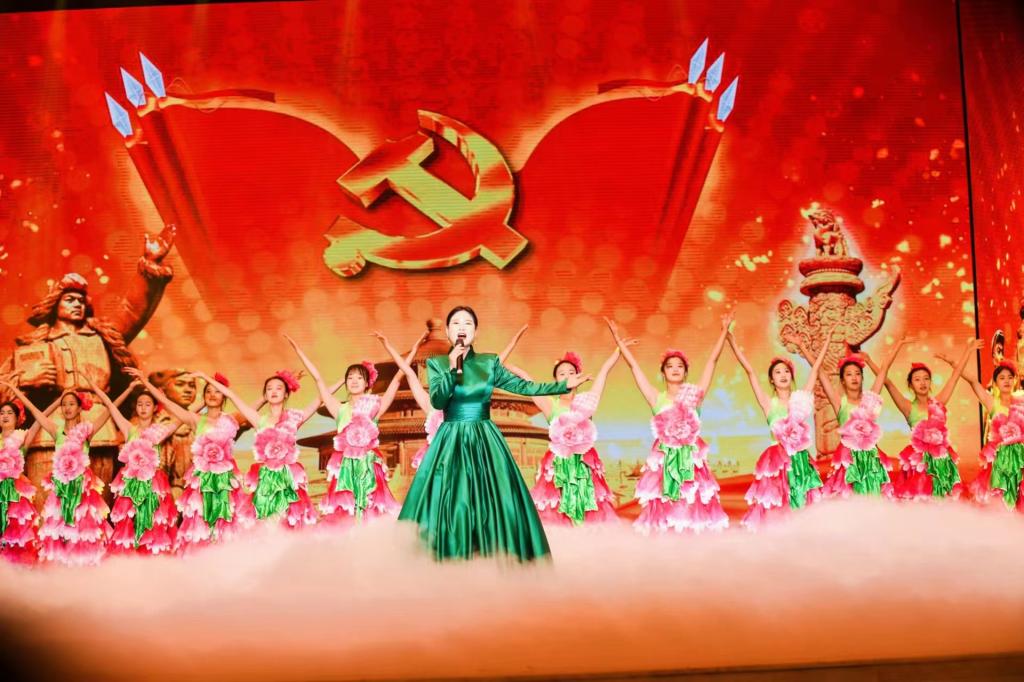 歌舞表演《领航》师生合作,再现经典,华美的服装、绚丽的舞台,畅东云老师的精彩演绎,余音绕梁,不绝于耳,带领观众走进高雅的艺术殿堂。师生们用动人的歌舞表达了对党和祖国的美好祝福与深沉热爱,抒发了师大青年爱党爱国的赤子情怀。