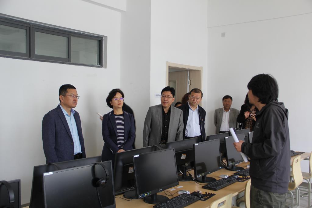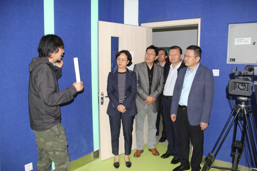 申红兴一行首先前往新闻学院进行实地调研。在参观了新闻学和播音与主持艺术教学实验室后,申红兴对学院在短短五年的时间里建成功能齐全、设备先进的新闻和播音主持实验室群表示充分的肯定,希望未来实验室能够承担更多的校外合作项目。