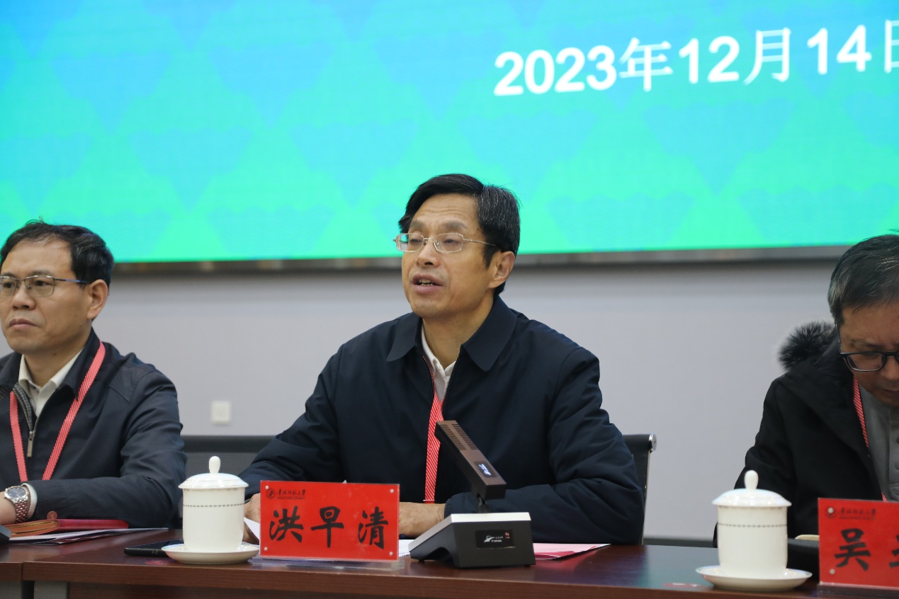 洪早清代表专家组介绍了进校考查的总体情况。进校考查期间,专家组通过多种方式和途径,严格依据师范专业二级认证标准,聚焦师范类专业认证“主线”和“底线”要求开展了查证工作。听取了学校关于师范教育相关情况的汇报和专业负责人的补充汇报,考查了图书馆、校史馆、师范生技能训练室等校内实训基地。开展听课看课,调阅毕业论文、实习材料、试卷考核材料,查阅管理文件、支撑材料,深度访谈了校领导、学院负责人、专业负责人、职能部门负责人,召开了教师、在校生、实习生、毕业生、用人单位、实践基地负责人等座谈会,走访了实习基地。他指出,从考查情况看,学校坚持立德树人根本任务,重视师范专业认证工作,积极对标开展专业建设和改进,自评自建工作有成效。