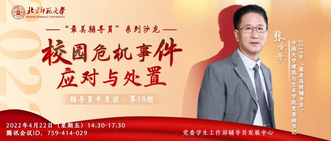 为加强与对口支援高校--北京师范大学学生工作的交流合作,充分借助北师大优质资源,4月22日下午,365官网学生工作处组织专职辅导员40余人参加了北京师范大学党委学生工作部组织的第十九期“辅导员半月谈”暨第四期全国“最美高校辅导员”系列工作沙龙。本次培训北师大学工部邀请到2019年全国“最美高校辅导员”、中南大学建筑与艺术学院党委副书记张金学做聚焦“校园危机事件应对与处置”作交流分享。两校共150余名辅导员参训。
