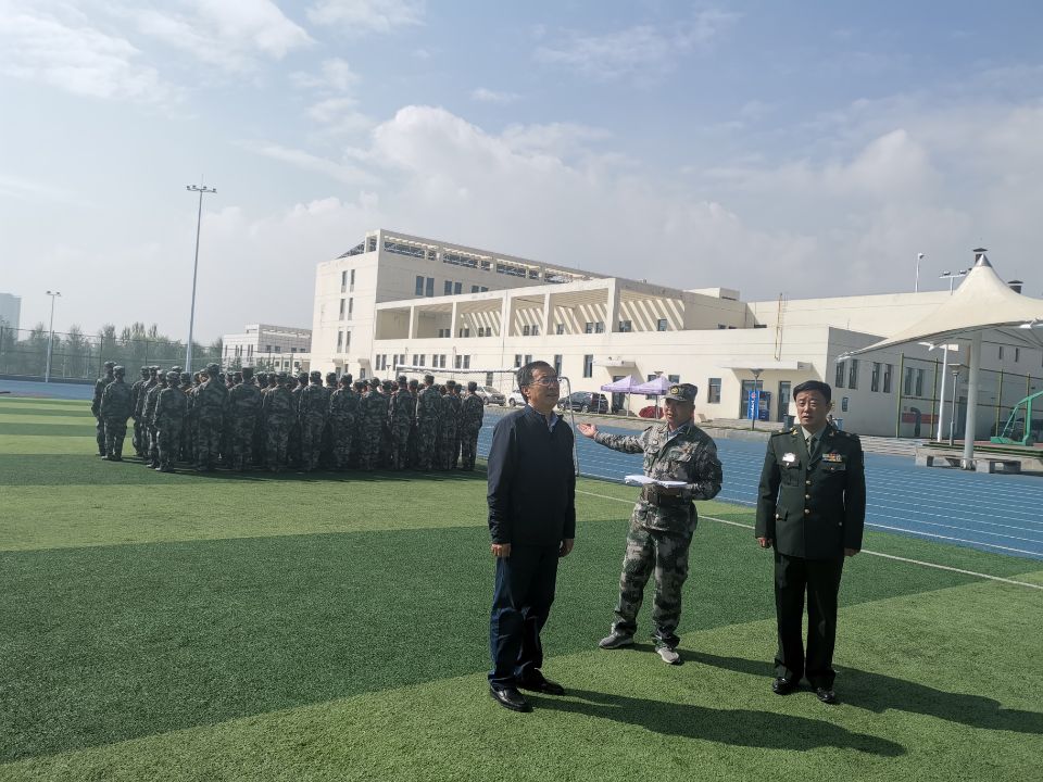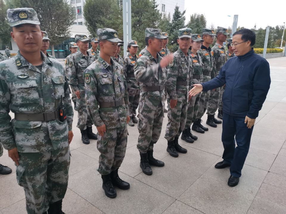 国庆期间副校长许存宁在学生工作处负责人的陪同下三次深入新生军训场地,检查军训情况,看望慰问承训教官和参训新生。