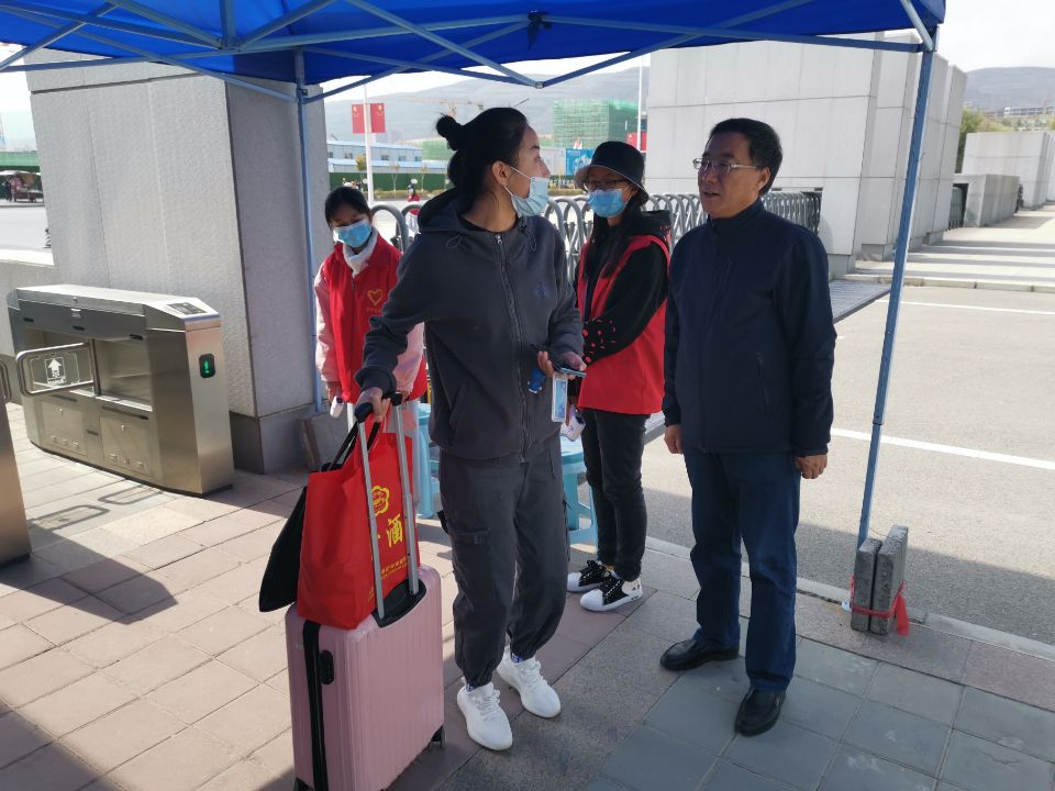 10月8日上午,许存宁再次到军训场地慰问了军训教官和参训学员,并检查了国庆期间学生返校疫情防控各项检查落实情况,同时慰问了学生工作处在岗值班人员和志愿者,对他们的工作给予了肯定。