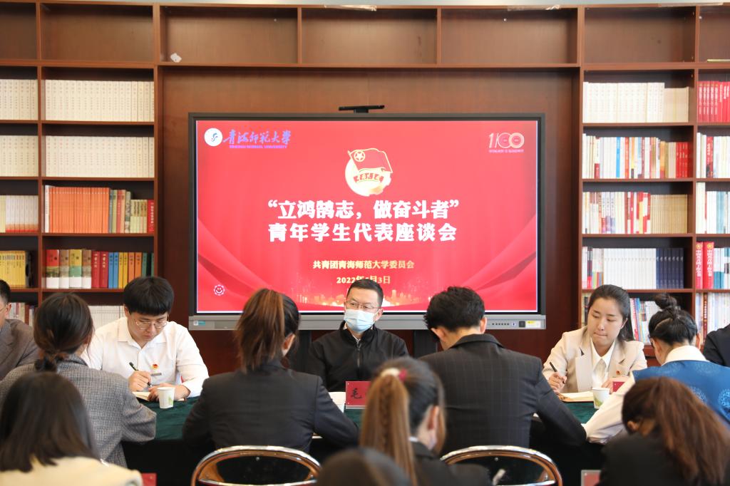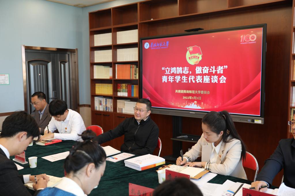 2022年是中国共产主义青年团成立100周年,在“五四”青年节到来之际,5月3日下午,校党委书记毛学荣、党委副书记许存宁来到青年之家看望慰问青年学生代表,与学生们进行座谈,勉励广大学生“立鸿鹄志,做奋斗者”,在青春的赛道上,跑出当代青年最好的成绩,并向广大青年致以节日的问候。座谈会由许存宁主持。