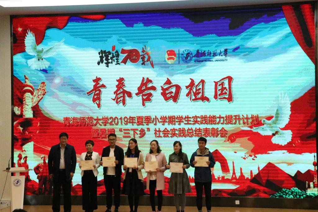 表彰会回顾了各实践团队的动人故事和丰硕成果。“生态青海江源行”·北师大、山大、青海师大三校联合夏令营团队、第十三届海峡两岸大学生走进可可西里夏令营团队、赴甘肃省定西市渭源一中文化教育服务小分队和赴平安区峡群林场野生植物资源调查小分队分别进行了团队风采展示。