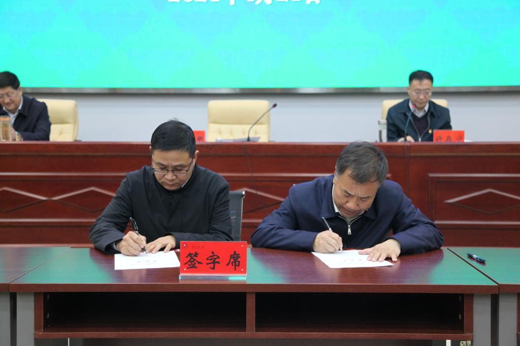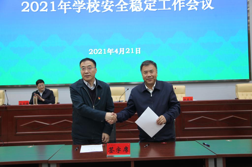 会上,马德明代表学校与各分管工作校领导签署了《2021年度安全稳定工作目标责任书》,许存宁与相关学院签署了《2021年度实验室安全工作目标责任书》。