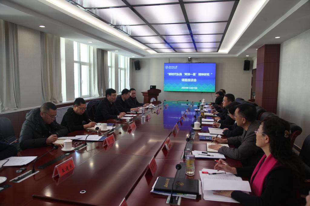 省委宣传部副部长高波、省委宣传部办公室主任陈海雷、省委宣传部理论处处长彭延青、省委宣传部宣教处处长张涛,校党委书记毛学荣、副校长赵海兴、冶成福以及校党委办公室、党委宣传部、社会科学处、马克思主义学院、“两弹一星”精神研究院等职能部门负责人和教师代表参加了座谈会。