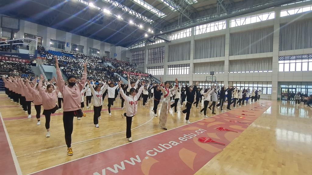 本次共有16个学院,4000余名学生参加了比赛。教务处、体育学院、音乐学院、体育中心等相关负责人出席开幕式。体育学院5名专业老师和各学院17名学生代表共同组成了此次比赛的评委,对每个学院参赛队的动作规范和精神面貌等方面进行打分评比。