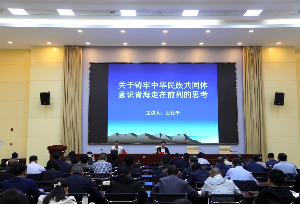 会上,青海省政协民族和宗教委员会主任王化平作专题辅导。王化平以《关于铸牢中华民族共同体意识青海走在前列的思考》为题,围绕“从中华民族到中华民族共同体意识”“铸牢中华民族共同体意识理念的重要意义”“铸牢中华民族共同体意识青海怎样走在前列”三个方面对铸牢中华民族共同体意识作了系统全面的讲解。