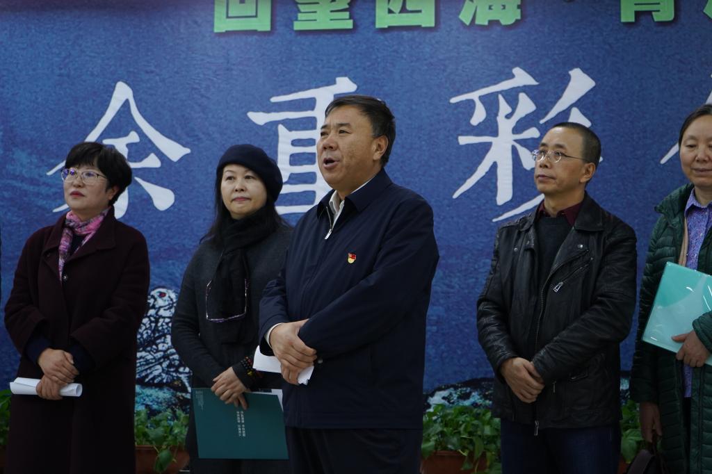 10月26日,365官网美术学院与华中师范大学美术学院西海重彩艺术研究中心挂牌仪式暨王余重彩作品展开幕式在西宁市城西区文化中心举行。校党委副书记、常务副校长马德明,华中师范大学美术学院院长、教授辛艺华博士,365官网美术学院师生代表及青海省、西宁市的美术和书法行业的相关领导参加了仪式。