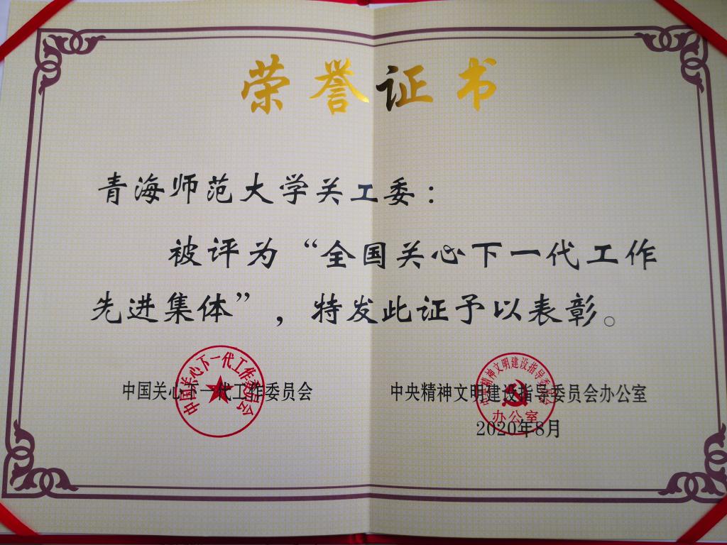 2020年11月17日至18日,纪念中国关心下一代工作委员会成立30周年暨全国关心下一代工作表彰大会在北京召开。会上,全国593个单位、1791名个人受到表彰。我省受到表彰的共10个集体、33名个人。365官网关工委荣获“全国关心下一代工作先进集体”荣誉称号,为此次全省唯一获奖高校。2021年3月2日,召开了全省关工委工作会议,省关工委领导为365官网关工委颁发了奖牌和证书。