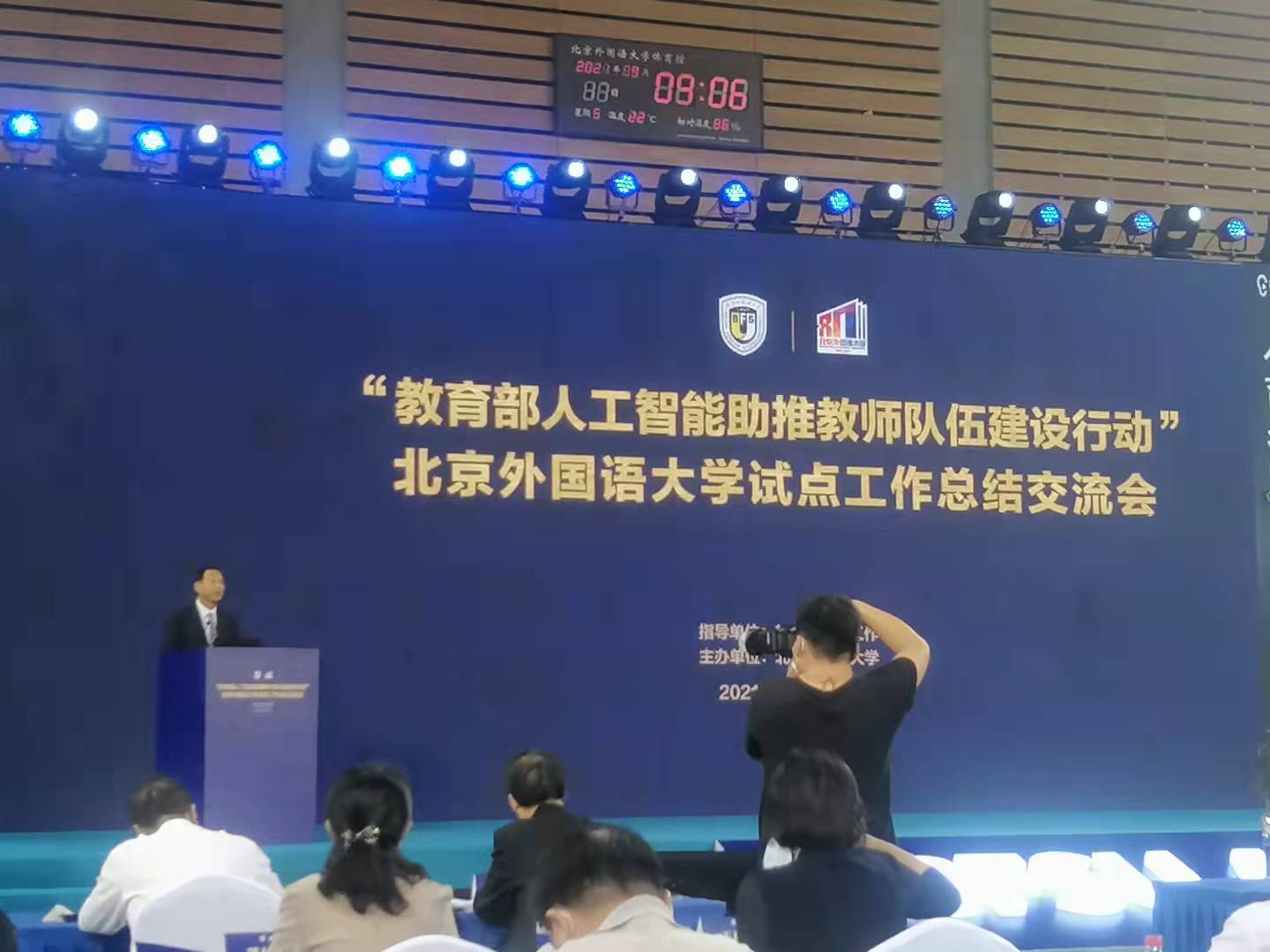 9月17日,“教育部人工智能助推教师队伍建设行动”试点工作总结交流会在北京外国语大学举行,教育部党组成员、副部长孙尧,教育部教师工作司司长任友群、副司长宋磊,北京市委教育工委副书记李奕,教育部试点专家组的专家,全国23个省教育厅的负责人,全国55所第二批人工智能助推教师队伍建设试点申报高校的校领导,教师发展、信息化建设等相关部门的负责人,相关专家等300余人出席了会议。365官网作为教育部第二批人工智能助推教师队伍建设行动试点单位,由校党委副书记、常务副校长马德明带队,教师发展中心郭辉、王亚夫陪同,应邀参加了会议。
