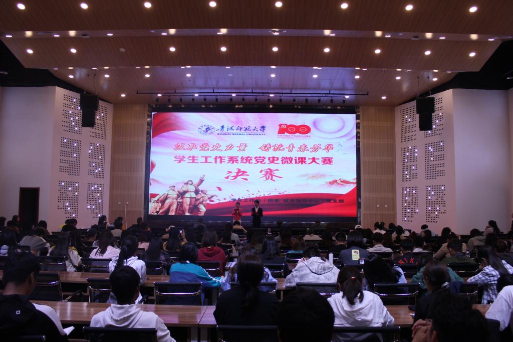 为深入推进党史学习教育活动,6月1日至17日,学校学工系统举办了以“汲取党史力量,铸就青春芳华”为主题的党史微课大赛,本次赛事旨在深入推动大学生党史教育,进一步强化对青年学生的政治引领和价值引领。6月17日下午,党史微课大赛决赛在图书馆报告厅举行,党委宣传部、教务处、学生工作处、督导室、教师发展中心主要负责人、学院主管学生领导、辅导员及200余名学生代表参加了此次活动。