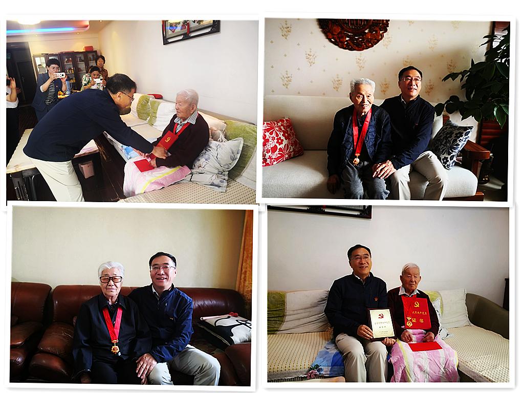 三是走访慰问颁发。校领导在组织部、机关党委等相关部门负责人的陪同下,先后到荣获全省优秀共产党员称号,91岁高龄、有着72年党龄的离休干部王家祺;93岁高龄、64年党龄的老党员邓金梅;89岁高龄、65年党龄的老党员李明家中,为他们颁发了纪念章,发放了慰问金,表达了敬意,详细了解生活和身体情况。老党员对党中央的关怀表示深深感谢。
