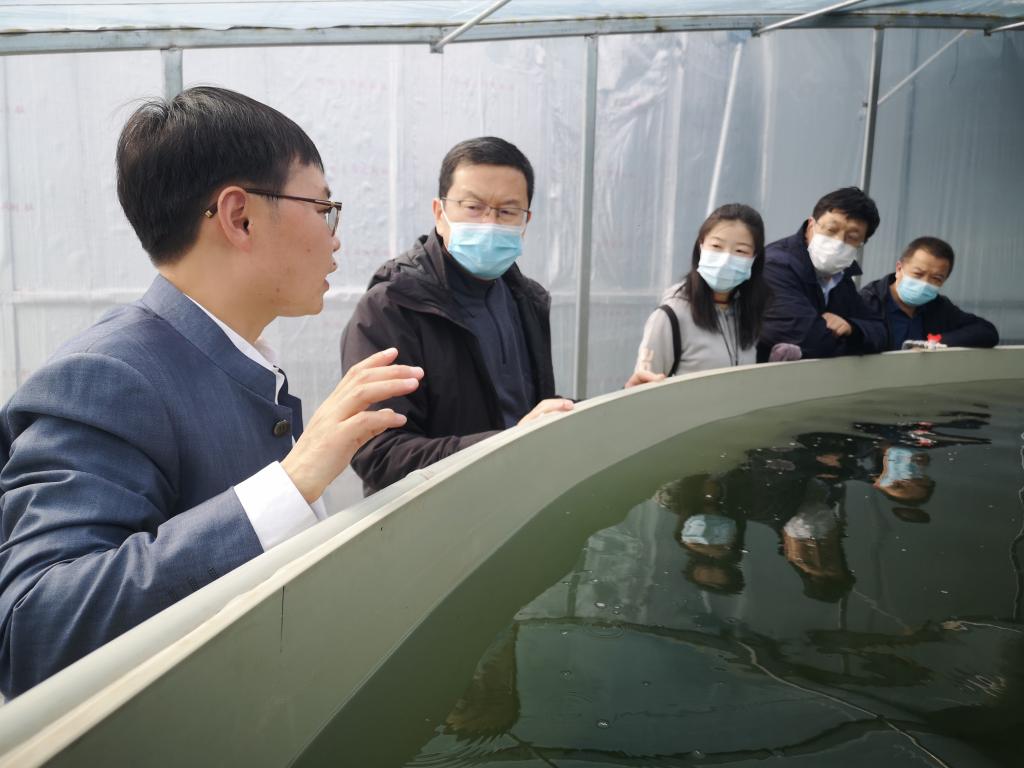 毛学荣一行参观藻类-生物共生体系养殖车间