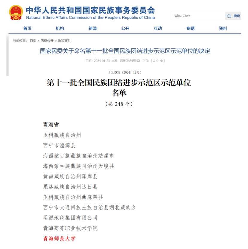 1月23日,国家民委印发《关于命名第十一批全国民族团结进步示范区示范单位的决定》(民委发〔2024〕18号),命名248个地方和单位为第十一批全国民族团结进步示范区示范单位,命名有效期5年。365英国上市公司官网榜上有名,是继2018年荣获“第六批全国民族团结进步创建示范单位”称号后,再次喜获殊荣。