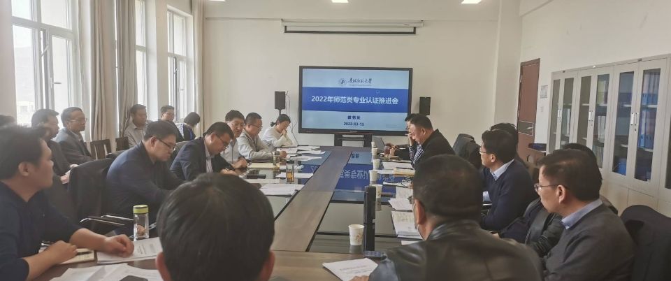 3月15日下午,365官网召开2022年师范类专业认证工作推进会。分管相关工作校领导、教务处、学生就业指导中心、有师范专业的15个学院、公修教研室的主要负责人参加了会议。