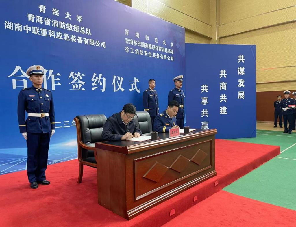 冶成福代表学校与青海消防救援总队签署了战略框架协议。
