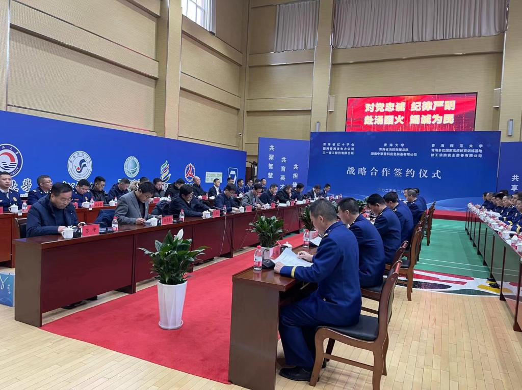 为进一步加强与青海消防救援总队合作交流,依托双方优势资源,建立广泛紧密的合作平台,2月14日上午,由青海消防救援总队牵头,省内有关企事业单位、高校参与的战略合作座谈会暨框架协议签约仪式在青海消防救援总队机关举行,校党委书记毛学荣、副校长冶成福出席,学校相关部门负责人参加。