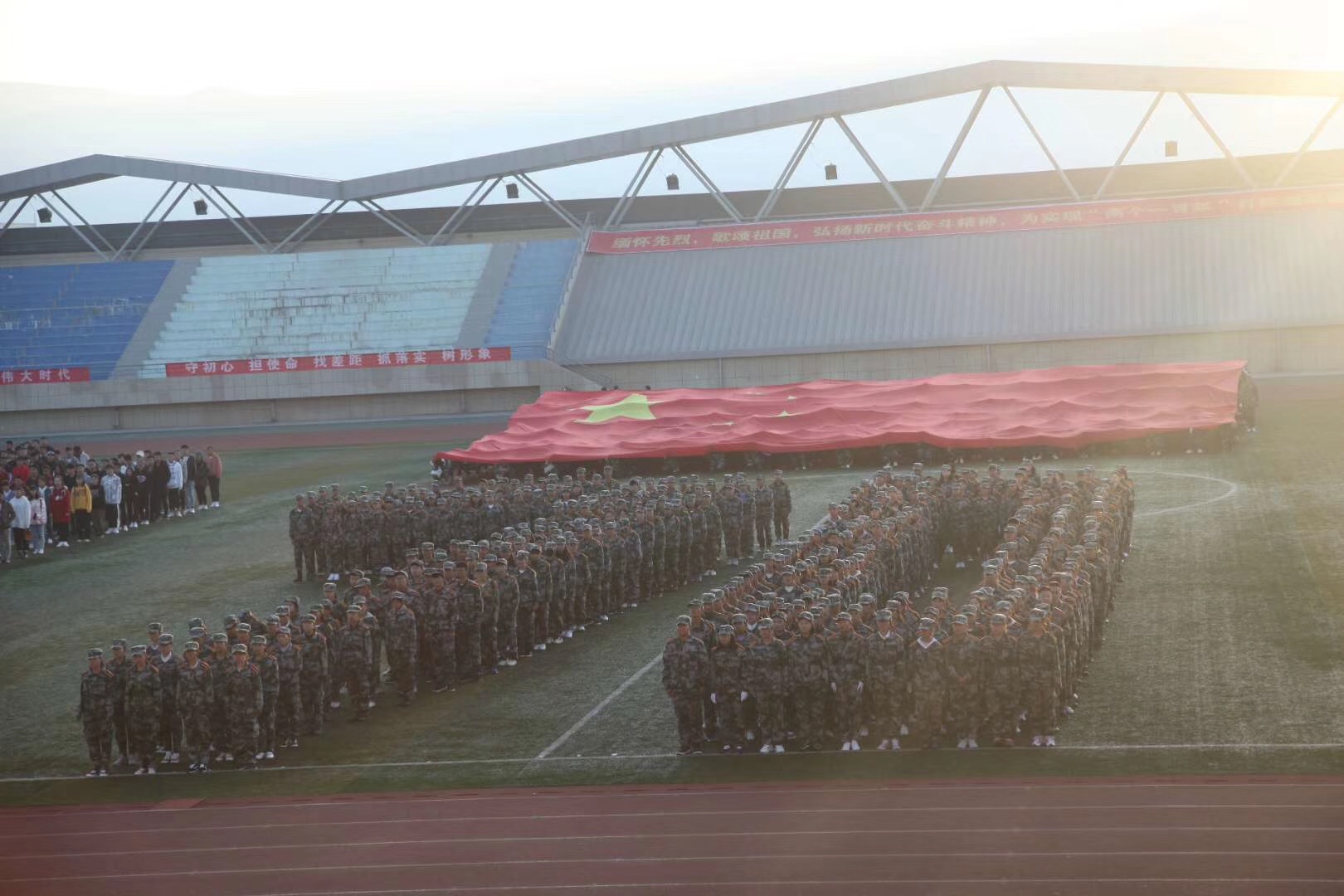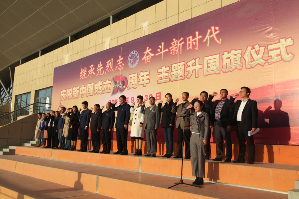 为深切缅怀革命先烈,纪念新中国成立70周年,9月30日清晨,365官网举行了“继承先烈志,奋斗新时代,庆祝新中国成立70周年”主题升国旗仪式。校党委书记张雄伟,校党委副书记、常务副校长马德明,副校长冶成福及校办、学生工作处、团委、就业指导中心、各学院相关负责人和全校6000余名师生参加了升旗仪式。升旗仪式由学生工作处马志明主持。