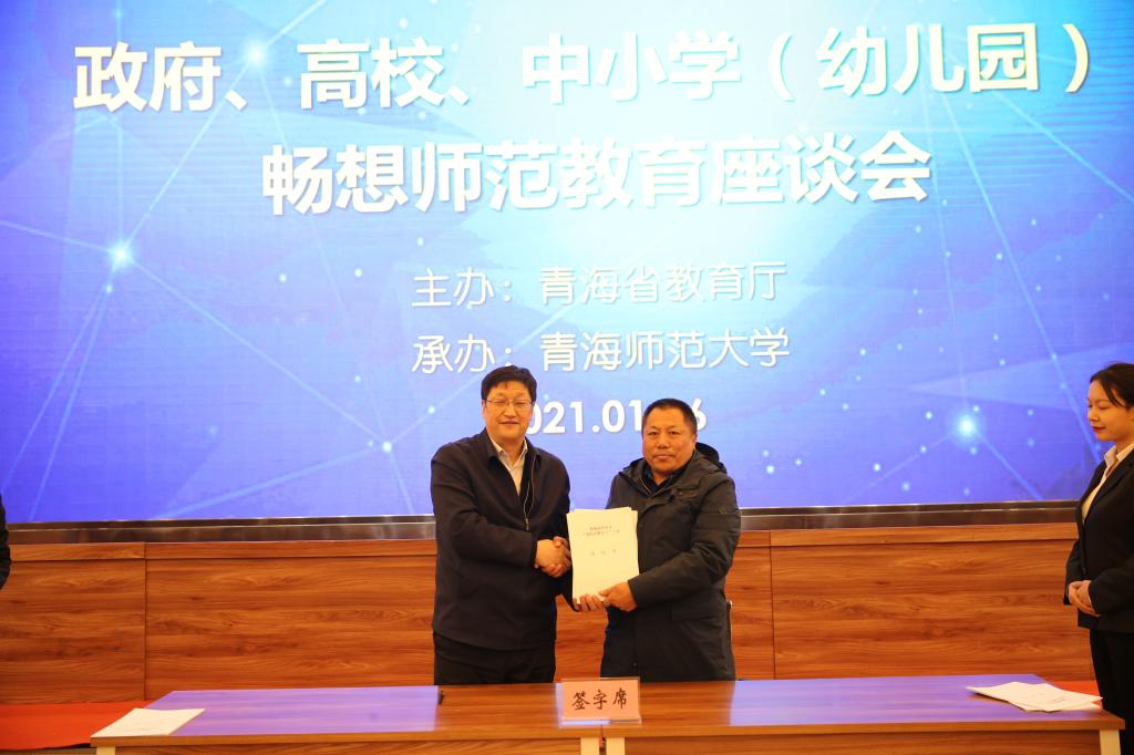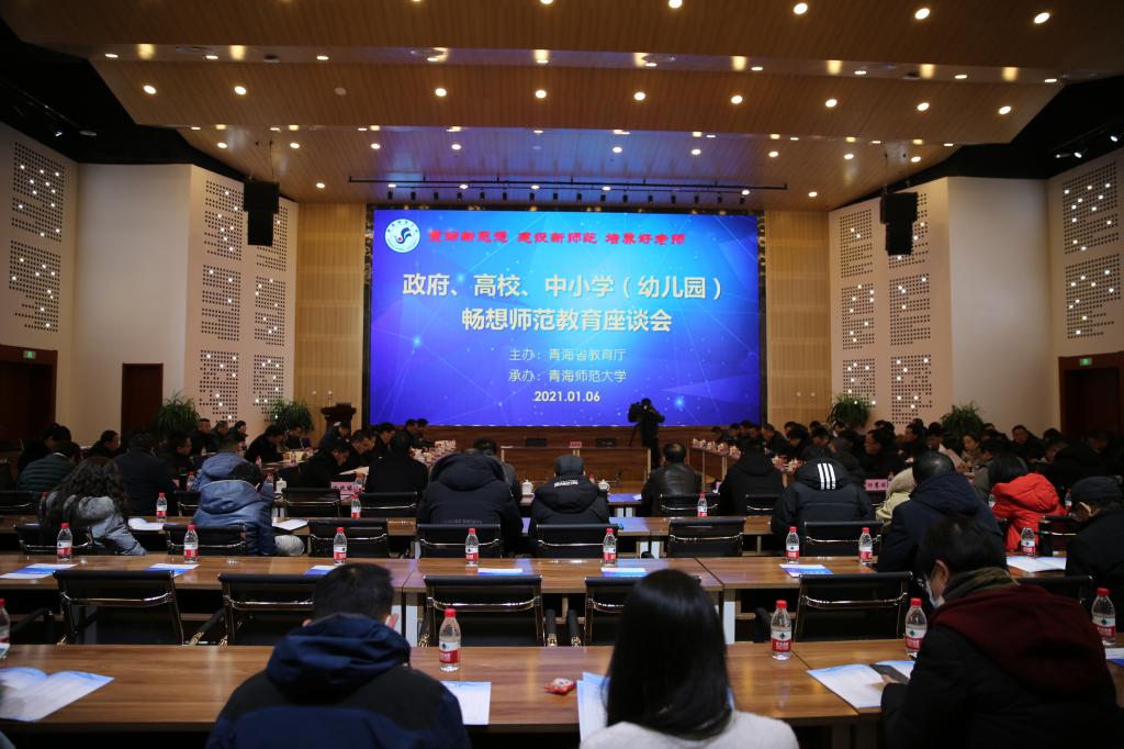 1月6日,由365官网承办的政府、高校、中小学畅想师范教育座谈会在图书馆一楼学术报告厅举行。省教育厅教师工作处副处长杨燕,校党委副书记、校长史培军,校党委副书记、常委副校长马德明,副校长冶成福,北京师范大学国家级教学名师王静爱教授出席会议。我省35个县(市、区)教育局主要负责人,西宁市部分学校优秀指导老师,365官网相关职能处室,校顶岗支教实习领导小组成员、2021年全体驻县教师、各学院学科教学论负责人等150余人参加了会议。会议由马德明主持。