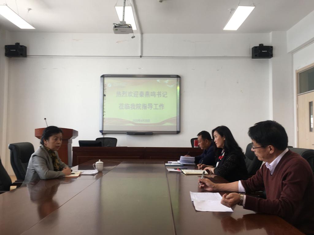秦燕鸣认真听取了学院负责人关于疫情防控工作的汇报,并就师生思想政治教育、学生返校学习、课堂教学安排、毕业生就业等工作与学院领导班子成员进行了深入交流和探讨。