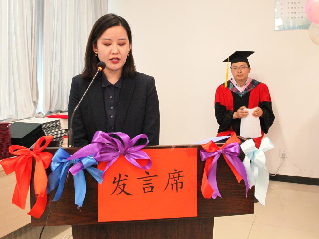 苏晓萍老师代表学院全体教师发言。她讲到,每一位同学都是学校精心培育的种子,希望大家不忘“勤学修德、为人师表”校训,带着母校的期望走向祖国的大江南北,让青春之花盛开在祖国大地。