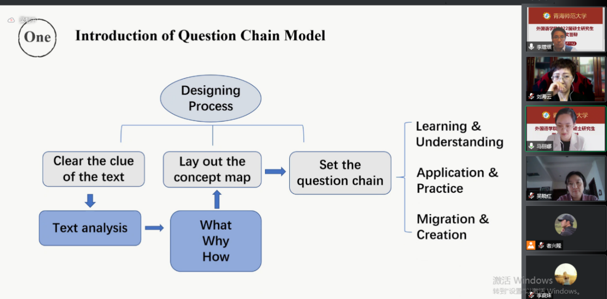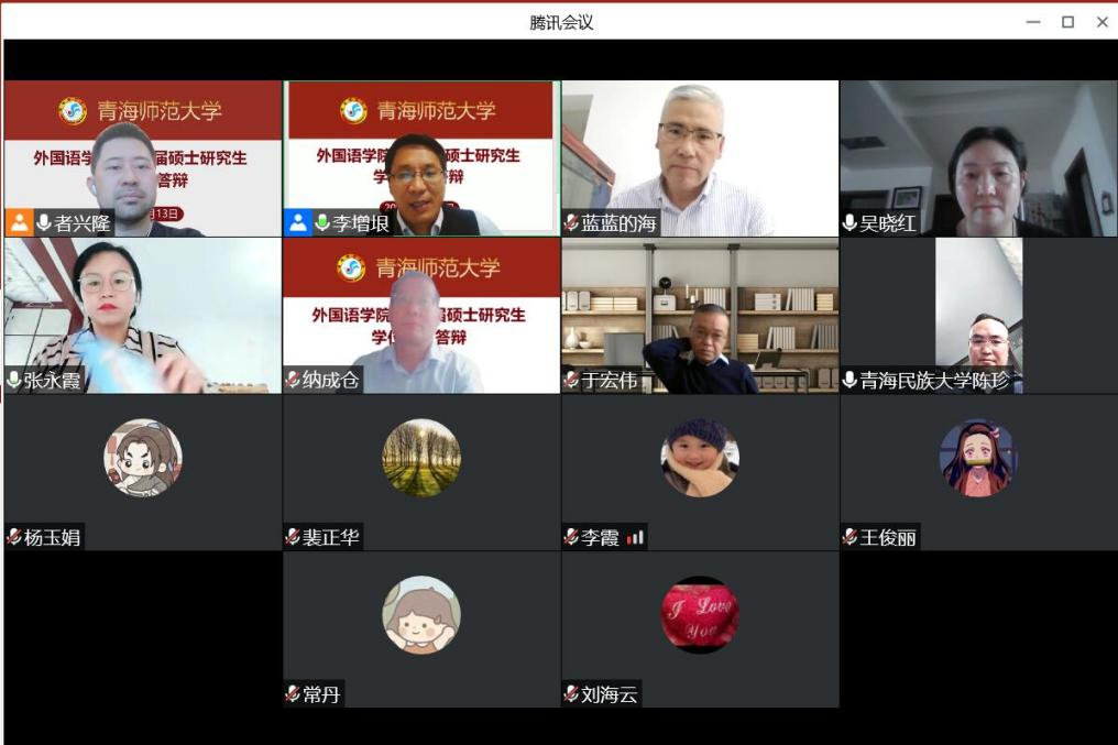 外国语学院学位分委员会负责遴选并聘请青海民族大学外国语学院吴晓红、陈珍,海东市乐都区教育局教研室袁复恩、省教育厅教研室张永霞等具有副高级以上职称、丰富的指导硕士研究生经验或多年从事外语基础教育的4位行内专家以及外院硕士研究生导师团队部分导师,共同组成研究生学位论文答辩委员会,分别对英语课程与教学论硕士研究生、学科教学(英语)硕士研究生共50人进行答辩。各答辩组设主席1名,秘书1名,答辩组主席主持答辩会各项议程。
