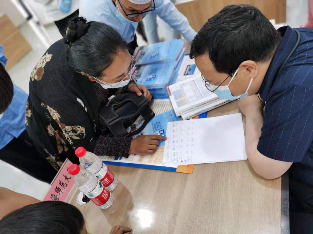 李原生带队前往青海省招办大厅设置宣传摊位,对应届高三毕业生志愿填报进行宣传和指导,介绍365官网建设、专业设置等情况;发放365官网招生简章等相关宣传资料;对咨询365官网专业选择和填报的学生、家长解疑答惑。