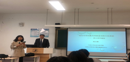 杨文炯教授首先介绍了“为何铸牢中华民族共同体意识——何为‘中国’之学术”,分别从国际上“边疆安全学”中多元一体的中国凝视、三套话语体系、反思西方的中国研究;国内学术界的“国学热”、中华民族的讨论等方面着手进行了阐释。随后重点阐述了“文化之基——铸牢中华民族共同体意识的磐石”,从人之生存的双重适应机制,不同机制中的人对于事物的认知问题、文化的概念等方面进行了分析与总结,使师生们更加明确了文化对于民族和国家的重要意义。最后,围绕龙符号共享的套叠文化结构理解多元一体的中国文化,以中国“龙”为主线,通过生动形象的示例和图片介绍了中国文化。