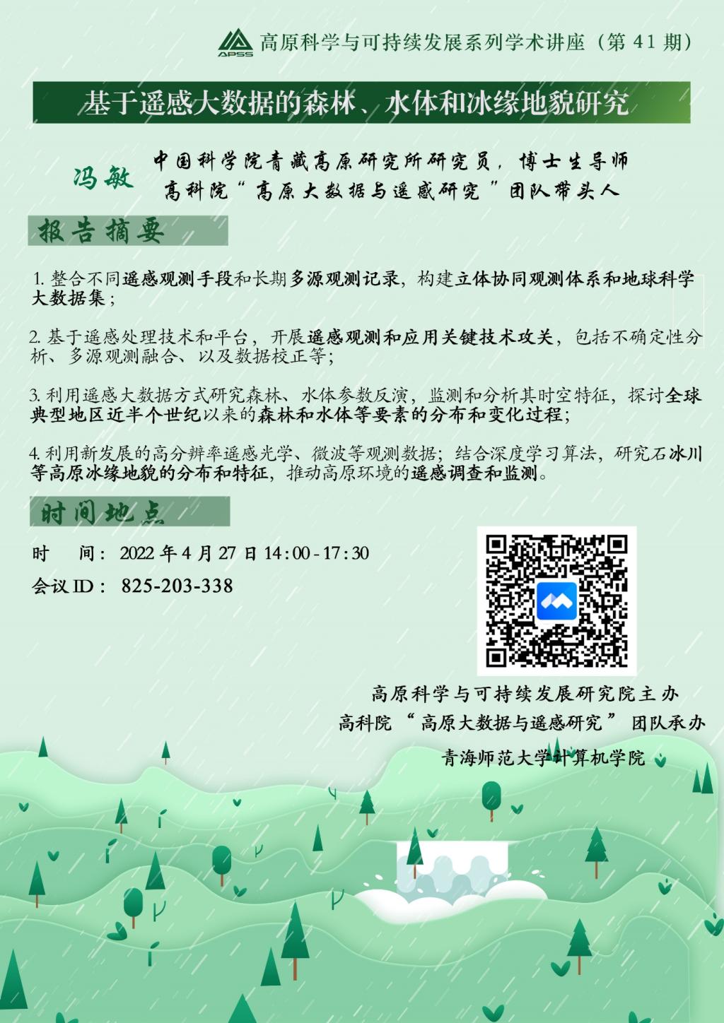 报告题目:基于遥感大数据的森林、水体和冰缘地貌研究