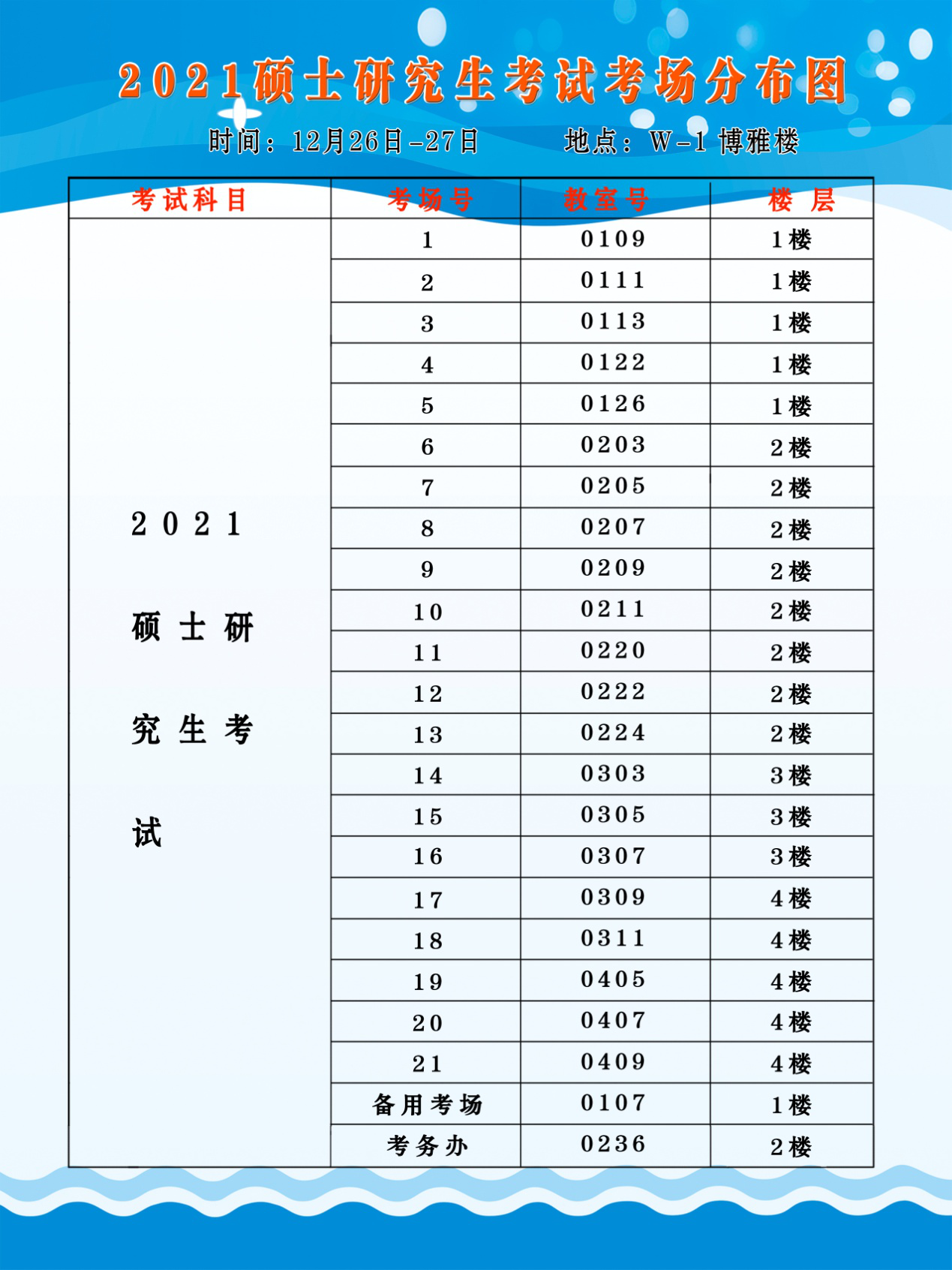 6304考点全国2021年硕士研究生招生考试考场布局图